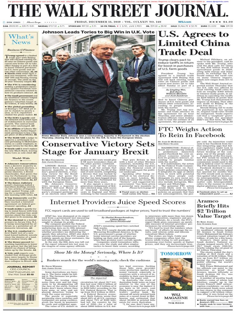 Wall Street Journal 13 12 2019 Pdf Brexit The Wall Street Journal
