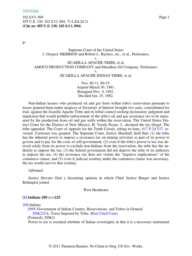 Merrion V Jicarillo Tribal Sovereignty In The United States Government